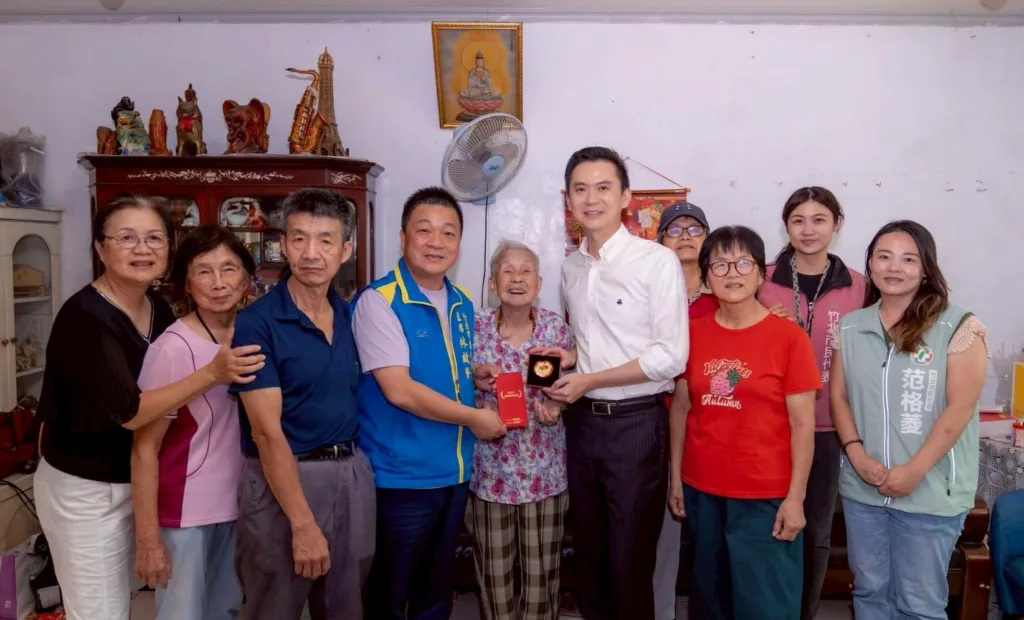10/29(三)是今年的重陽節,而今年竹北市共有15位百歲人瑞,其中有7位剛滿百歲,竹北市市長鄭朝方與市民代表會主席林啟賢、副主席葉信輝等人,特別前往百歲人瑞家中致贈金牌與紅包,向長者們致敬。