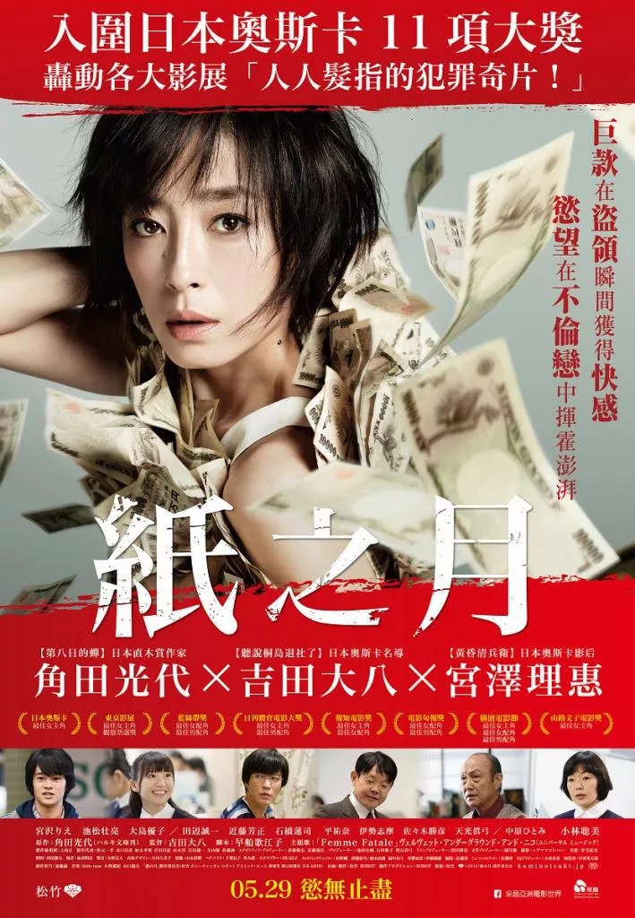《紙之月》改編自直木賞獲獎作家角田光代的同名暢銷小說,2014年曾改編成電視劇,由原田知世主演。時隔不到一年,又被迅速改編成電影,足見原著小說的獨特魅力。電影版由天賦異稟的吉田大八執導,由於前作《聽說桐島退社了》橫掃當年各大電影獎項,甚至讓他獲得日本奧斯卡最佳導演獎肯定,以至於本片製作消息一出,立刻廣受各界矚目。這回執導《紙之月》,吉田大八依舊以自身獨特的視覺魅力,輔以時而緊繃、時而輕快的敘事節奏,為女主角的放縱和墮落作出最佳詮釋。