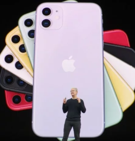 果粉最關注的iPhone 11,蘋果執行長提姆庫克庫克表示,新款iPhone 11有6款顏色,紫、白、黑、黃、綠、紅等,雙鏡頭配備200萬畫素,120度超廣角,2倍光圈,6.1吋,新增「夜拍模式」低光源的地方都可以快速捕捉影像細節,結合新的人像模式,表現更多的光線控制,智慧HDR,4K一秒60幀超高畫質,「QuickTake」功能快速在拍照時輕按畫面就可錄影,「Zoom」不需要暫停就可以切換鏡頭。值得注意的是,前置鏡頭升級至4K 30幀,自拍的時候可以慢動作錄製影片。