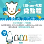 09/25(五)~11/26(四) 於威秀影城官網、官方APP或影城iShow專區以iShow點數18點,即可免費兌換「威秀影城飲料提帶」乙組,數量有限,兌完為止!