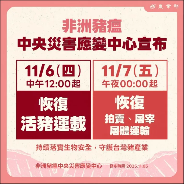 應變中心:疫情清零 豬隻2階段解禁 活豬運載今午恢復 明零時恢復拍賣屠宰